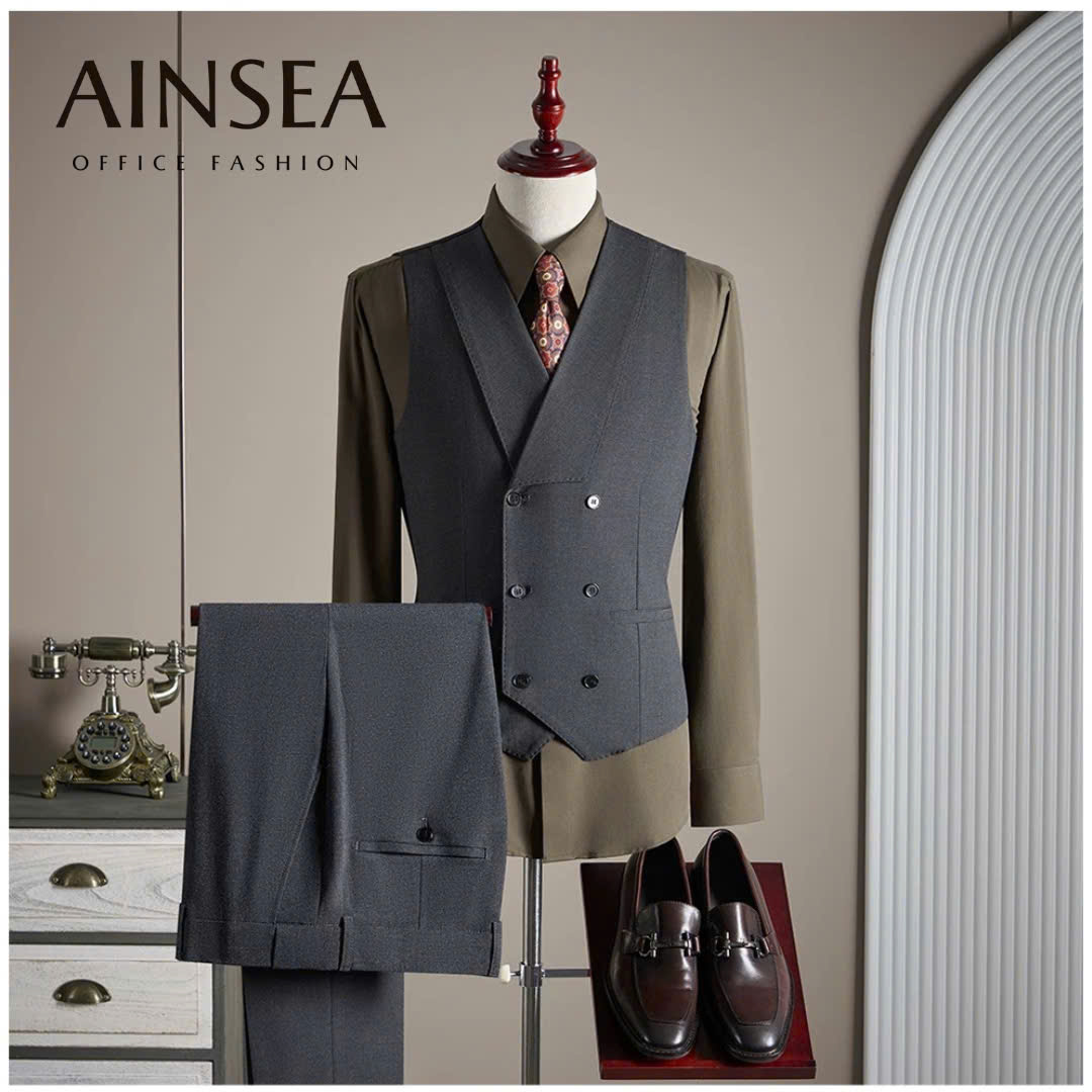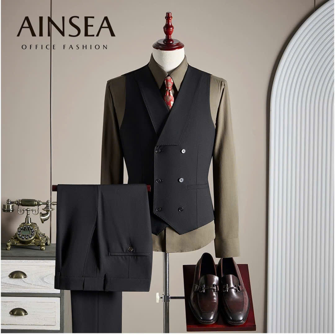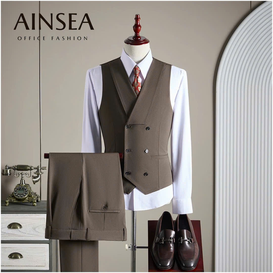 Bộ Suit Gilet AINSEA mang đến diện mạo lịch lãm và chuyên nghiệp cho quý ông hiện đại. Với thiết kế áo Gilet hai hàng khuy tinh tế kết hợp cùng quần tây đồng màu chuẩn form, bộ trang phục giúp tôn vinh vóc dáng một cách hoàn hảo. Chất vải cao cấp, ít nhăn và tông màu nâu tây sang trọng khiến đây trở thành lựa chọn tối ưu cho những buổi họp quan trọng, sự kiện hay môi trường công sở cao cấp.